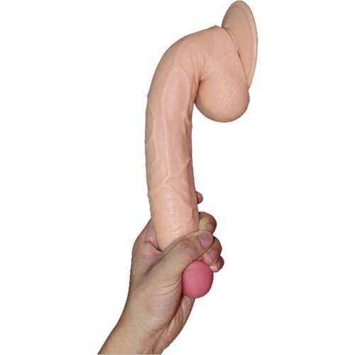 Ρεαλιστικό ομοίωμα πέους με όρχεις της σειράς Legendary Realistic Dildo, το οποίο είναι κατασκευασμένο από εύκαμπτο υλικό και σχεδιασμένο με ανάγλυφο κορμό με φλέβες, ροζ κεφαλή και βεντούζα στη βάση του για μεγαλύτερη σταθερότητα και ελευθερία κινήσεων στα χέρια.