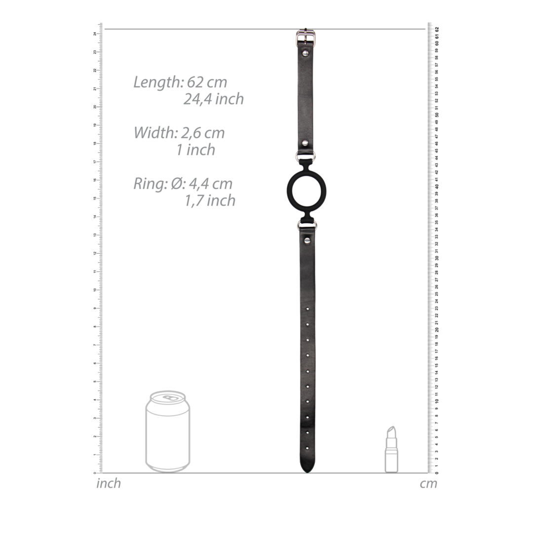 Το δερμάτινο λουρί είναι πλήρως ρυθμιζόμενο και διαθέτει στιβαρό μεταλλικό κούμπωμα για ασφαλή σύσφιξη. Αυτό το φίμωτρο με O-ring έχει συνολικό μήκος 62 εκ. και η εσωτερική διάμετρος του ευέλικτου σιλικονένιου δακτυλίου είναι 4,4 εκ.