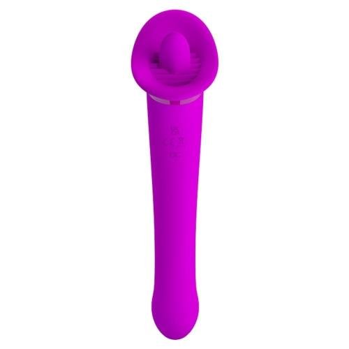 Δονητής πολυεργαλείο Pretty Love Faust, διπλής δράσης, ιδανικός για προκαταρκτικά παιχνίδια. Με μια πλευρά που διαθέτει ηλεκτρική γλώσσα για γαργαλητό στη κλειτορίδα και την άλλη πλευρά ως ισχυρό δονούμενο ραβδί, κατάλληλο για κολπική ή πρωκτική χρήση.